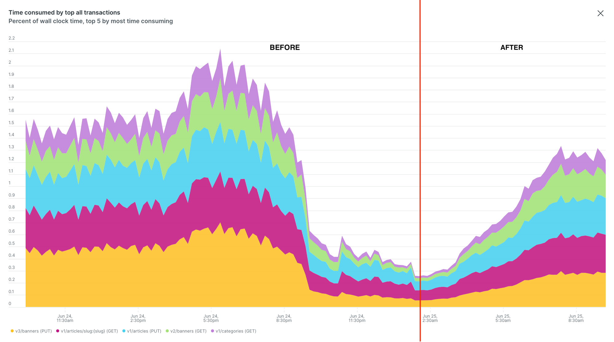 We validated these improvements through New Relic, which clearly reflected reduced response times and improved throughput across high-traffic APIs, as shown below: