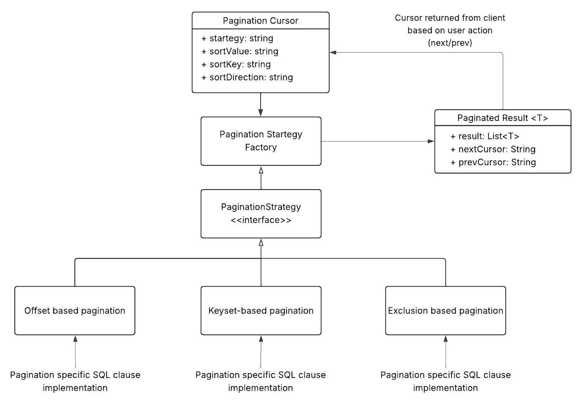 With clear guidance on when and how to use each pagination type, the next challenge was ensuring these strategies could be adopted consistently across services. This led us to design a clean, extensible framework using the Strategy Pattern.