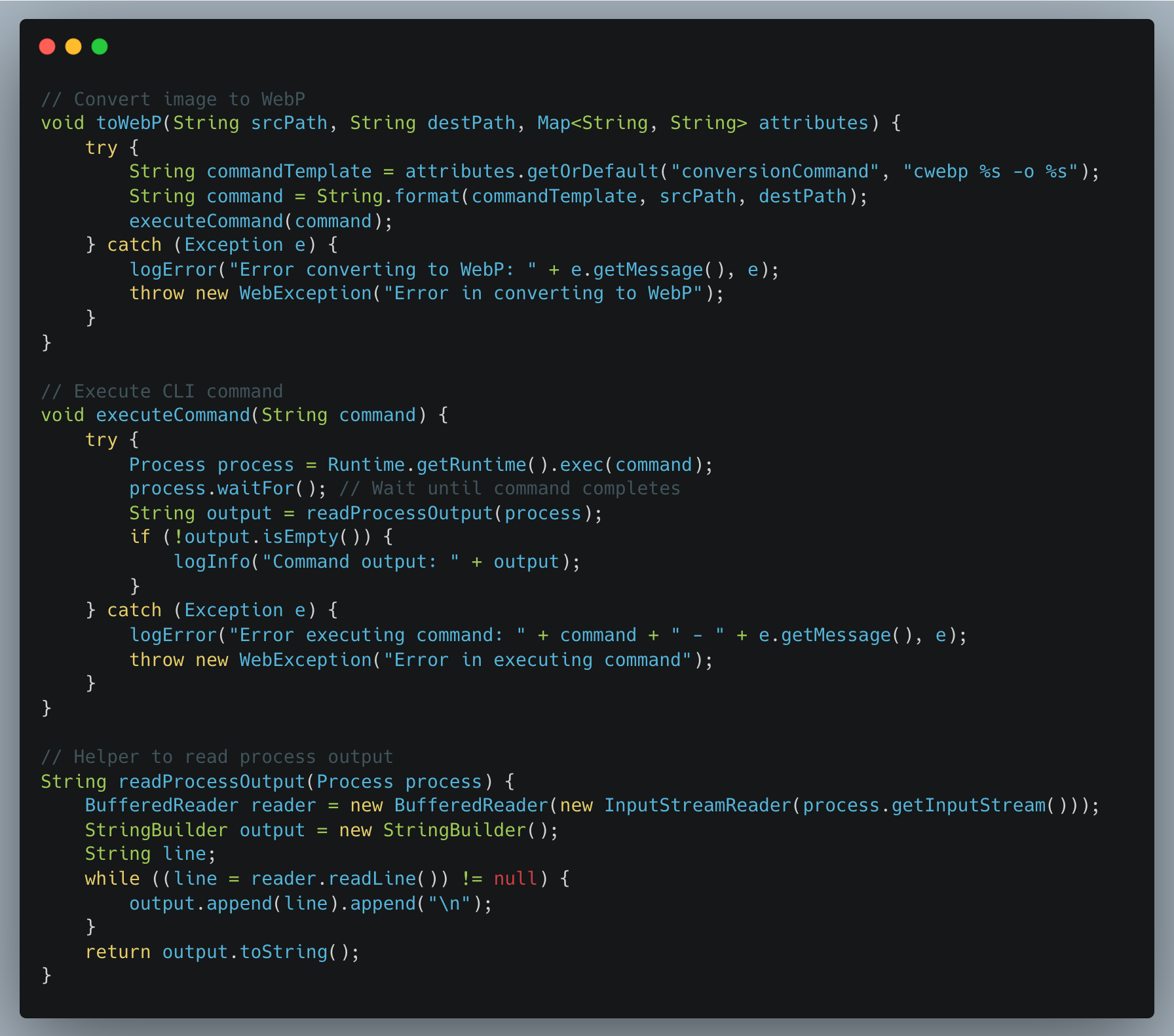 cwebpsynchronously for image files usingProcessBuilder - Waits for the process to complete