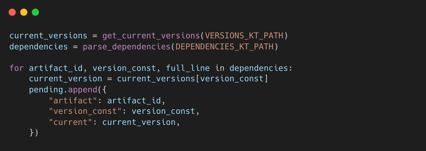 Dependencies.ktto understand which libraries are used. - Creates a list of libraries to check for upgrades.