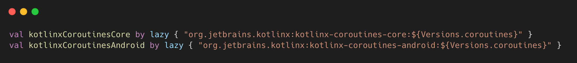Here, both dependencies use the same version constant Versions.coroutines. The script detects such duplicates and processes only one entry.