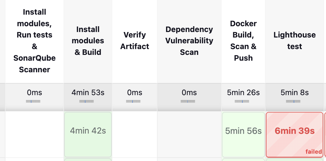 - Lighthouse CI was initially considered due to its simplicity, but its sequential execution model made it unsuitable for merge-request pipelines involving multiple URLs and repeated runs. Execution times increased linearly and quickly exceeded acceptable CI deployment time limits.