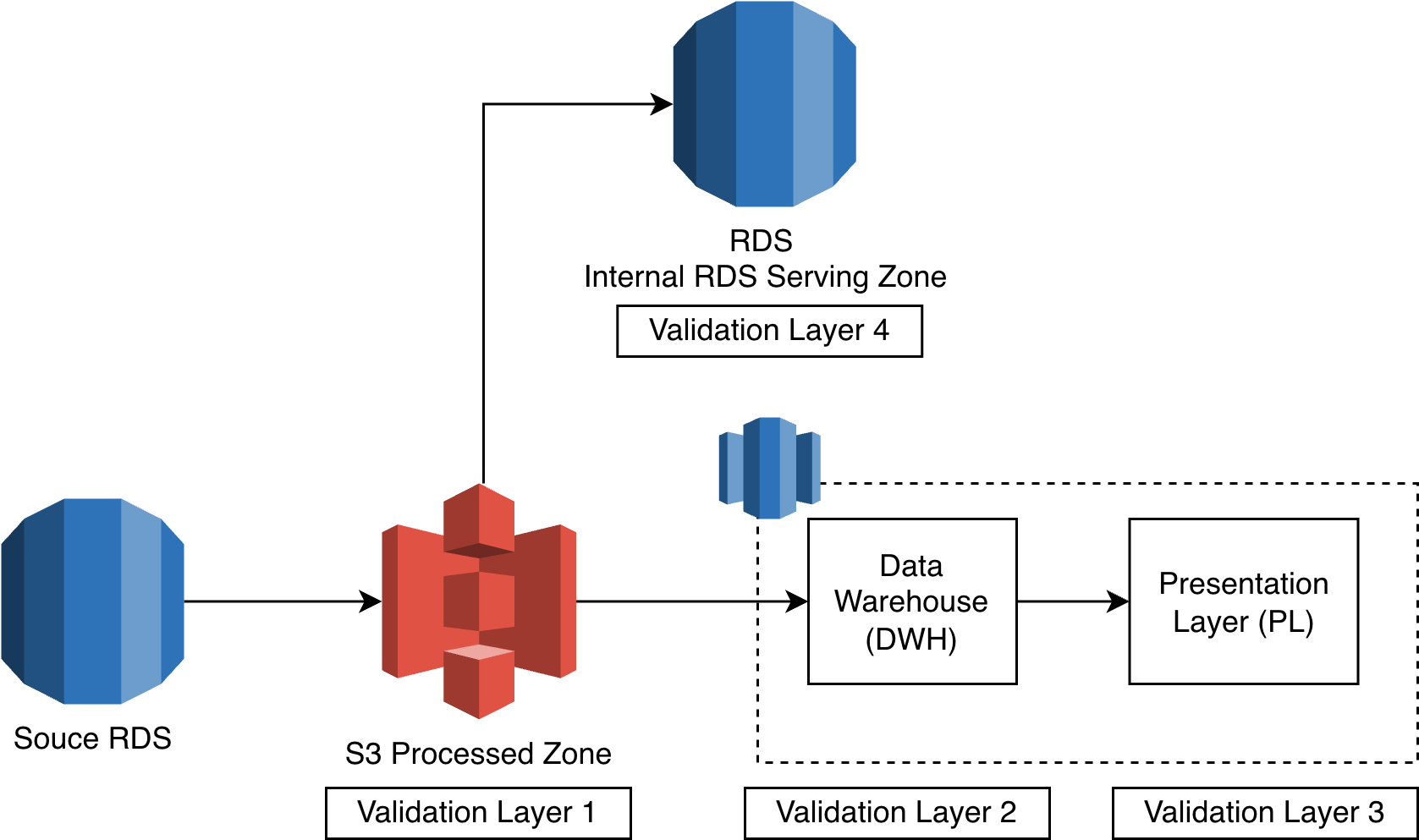 Each arrow in this diagram represents a potential point of failure, such as a schema mismatch, a dropped record, or a transformation bug. To mitigate this, we introduced specific validation checkpoints at every critical transition.