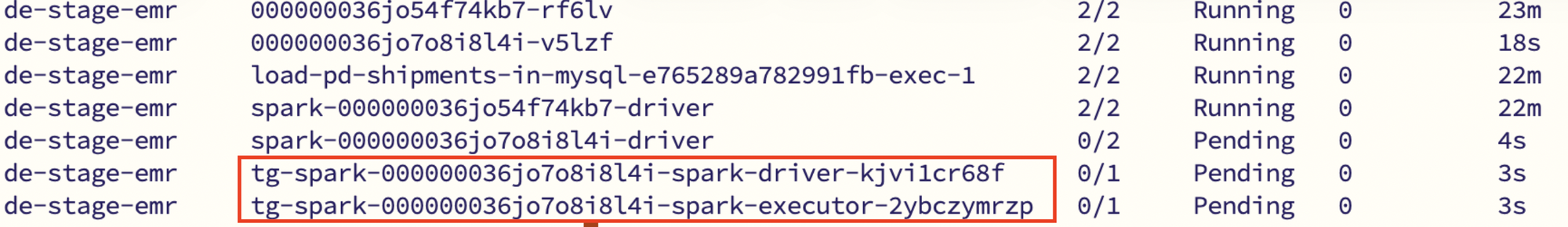 Since the Driver typically requests fewer resources compared to the total Executor footprint, it was often placed quickly on an available node. From Kubernetes’ perspective, this was a normal scheduling decision. - Executors were scheduled partially