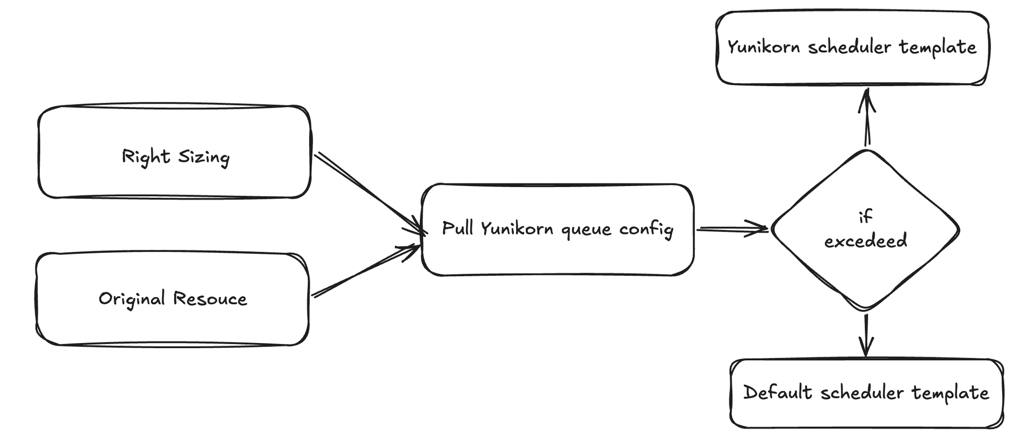 However, instead of rejecting the job outright when the requested resources exceed the queue’s limit, we implemented a controlled fallback mechanism. In such cases, the workload is redirected to the default Kubernetes scheduler.