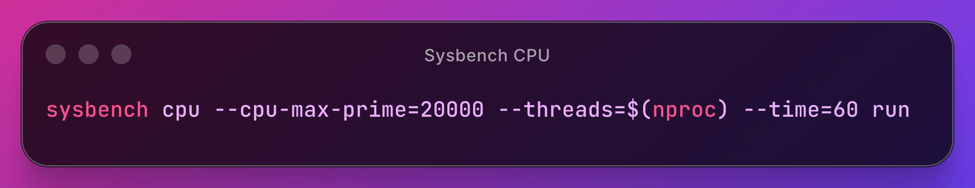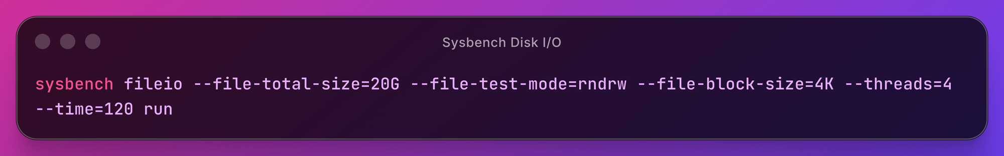 To establish a baseline for raw hardware capabilities, we began with Sysbench, a widely used, open-source benchmarking tool designed to evaluate CPU, memory, and disk I/O performance in a controlled and repeatable manner.