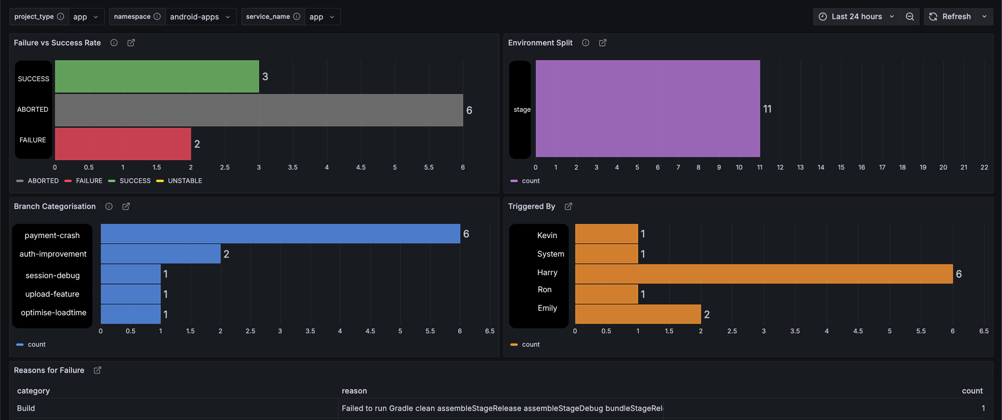 Instant Visibility: Engineering teams can now understand CI/CD health across all pipelines through centralised dashboards, eliminating the need to manually browse Jenkins jobs.